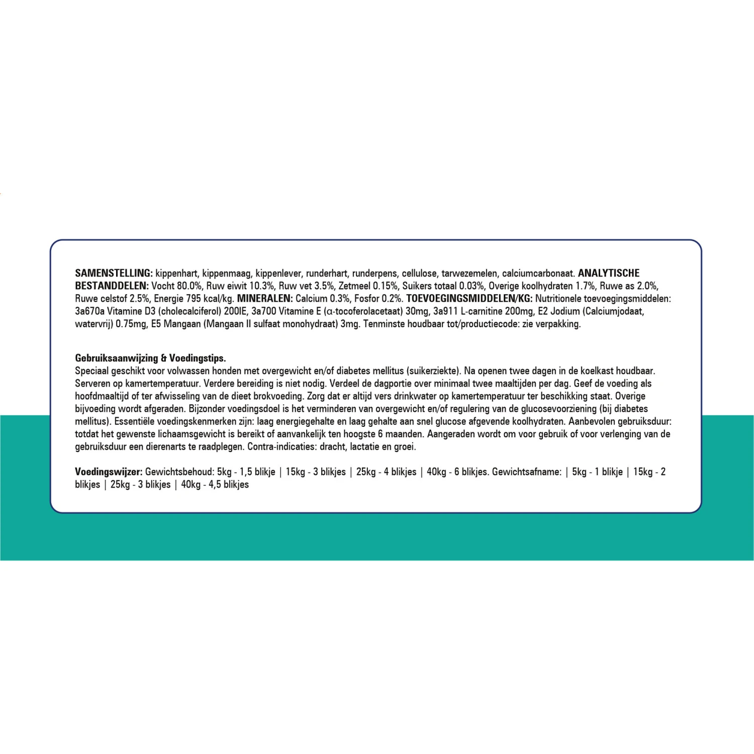 - Laag energiegehalte en laag gehalte aan snel afgevende koolhydraten